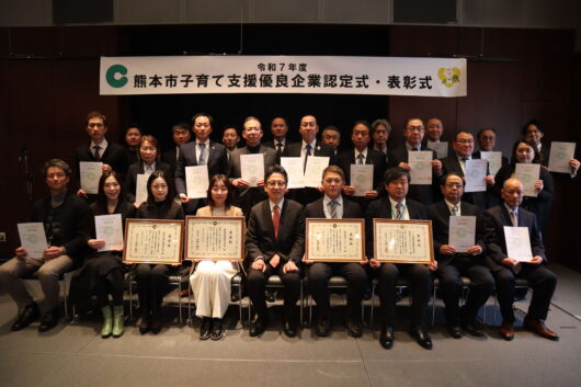 令和8年2月4日、熊本市現代美術館アートロフトで行われた『令和7年度 熊本市子育て支援優良企業認定式』にて優良企業認定を頂きました。